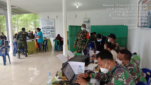 Asahan | Sementara pelibatan Babinsa dalam pendampingan terhadap kegiatan Vaksinasi merupakan bentuk kepedulian TNI terhadap kemanusiaan , selain juga bentuk tanggung jawab dan kewajiban dalam ikut mendukung pencegahan dan penanggulangan penyebaran virus Covid 19 yang saat ini masih belum berakhir, dalam hal ini Komandan Koramil (Danramil) 06/Kisaran Kapten Inf Nuryanto bersama dengan para Babinsa Koramil 06/Kisaran Serka Suroso dan Sertu Maryono turun kewilayah binaan untuk turut serta melaksanakan Pendampingan Vaksinasi Masal tahap I, kegiatan tersebut yang dilaksanakan bertempat di Kantor Camat Kisaran Timur Jalan Jenderal Ahmad Yani Kelurahan Kisaran Naga Kecamatan Kota Kisaran Timur Kabupaten Asahan, Kamis (16/09/2021).