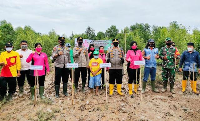 Langhkat – Dalam Rangka memperingati hari menanam pohon Indonesia,Danramil 18/BB Kapten Inf. Sudirman bersama Kapolres Langkat AKBP Danu Pamungkas Totok.SH.SIK didampingi Ketua Bhayangkari Langkat Ny. Indri Danu Pamungkas, melakukan penanaman mangrove di Dusun III Tepi Gandu, Desa Lubuk Kertang, Kecamatan Brandan Barat, Kabupaten Langkat, Rabu ( 1/12/2021).