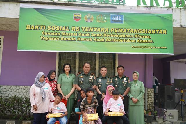 Dalam rangka meningkatkan derajat kesehatan dan kesejahteraan anak-anak berkebutuhan khusus, Korem 022/PT adakan Bakti Sosial Sunatan Massal untuk anak berkebutuhan khusus di Yayasan Rumah Ramah Anak Berkebutuhan Khusus Kabupaten Simalungun, Kamis (23/05/2024).