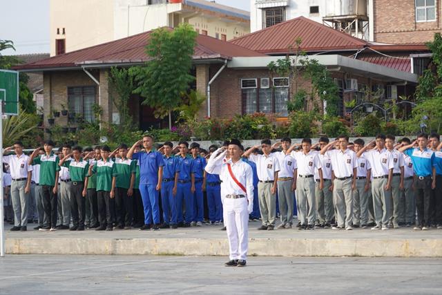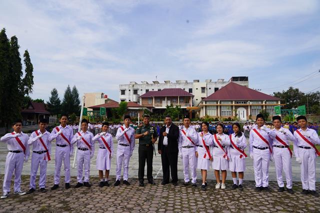 Pematang Siantar | Komandan Korem 022/Pantai Timur Kolonel Inf Agustatius Sitepu, S.Sos., M.Si., M.Han, menjadi Irup pada pelaksanaan Upacara Bendera Merah Putih serta memberikan Wasbang (Wawasan Kebangsaan) kepada para Siswa-siswi SMK Swasta Cinta Rakyat, kegiatan tersebut yang dilaksanakan bertempat di Lapangan Apel SMKS Cinta Rakyat Jalan Melanton Siregar, No.171 Blk, Nagori Sukaraja Kecamatan Siantar Marihat Kota Pematang Siantar, Senin (06/11/2023).