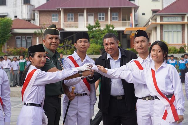 Kita juga senantiasa harus selalu menjaga etika sopan santun dan tetap berprilaku yang baik serta terpuji terhadap siapa saja, belajarlah secara baik, jauhi Narkoba serta pupuk selalu semangat Bela Negara demi keutuhan Negara Kesatuan Republik Indonesia, terang Danrem.