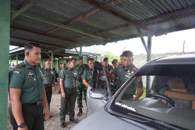Selesai memberikan pengarahan, Kolonel Agustatius Sitepu melaksanakan pengecekan terhadap seluruh kendaraan Prajurit guna mengantisipasi terjadinya pelanggaran, terutama dalam berkendaraan naik kelengkapan Materil maupun kelengkapan surat kendaraan.