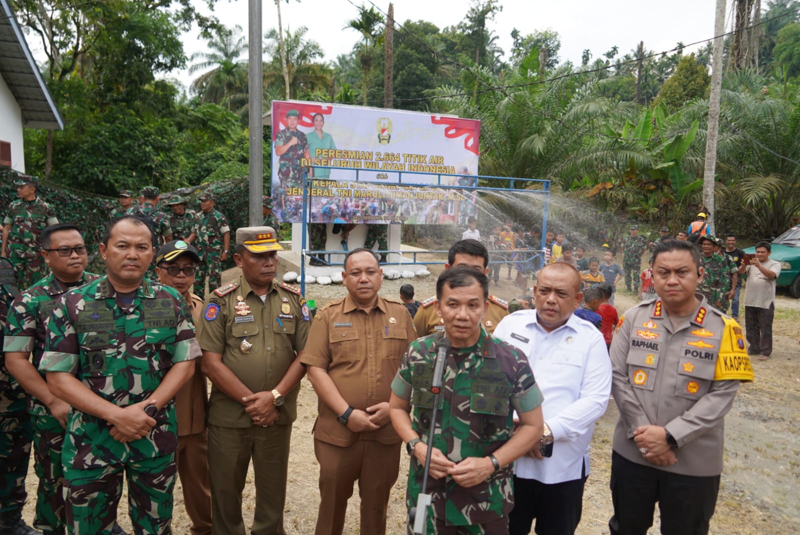 Pada kesempatan tersebut Pangdam l/Bukit Barisan Mayjen TNI Mochammad Hasan dalam sambutannya mengucapkan terimakasih kepada Pemerintah Daerah yang sudah membantu kami untuk mensukseskan kegiatan membuat titik titik air di pedesaan, selanjutnya sebentar lagi kita akan melaksanakan pesta demokrasi jadi jangan mudah terprovokasi kita pilih pemimpin yang menurut kita baik, saya menekankan untuk menekan bahaya narkoba yang telah menjadi masalah serius dan harus diberantas bersama sama semua komponen yang ada termasuk masyarakat. ” Untuk pemberantasan narkoba adalah masalah bagi kita semua, mari sama sama kita menjaga anak kita jangan sampai terlibat dengan narkoba kami TNI Polri akan terus membasmi narkoba,” tegas Pangdam.