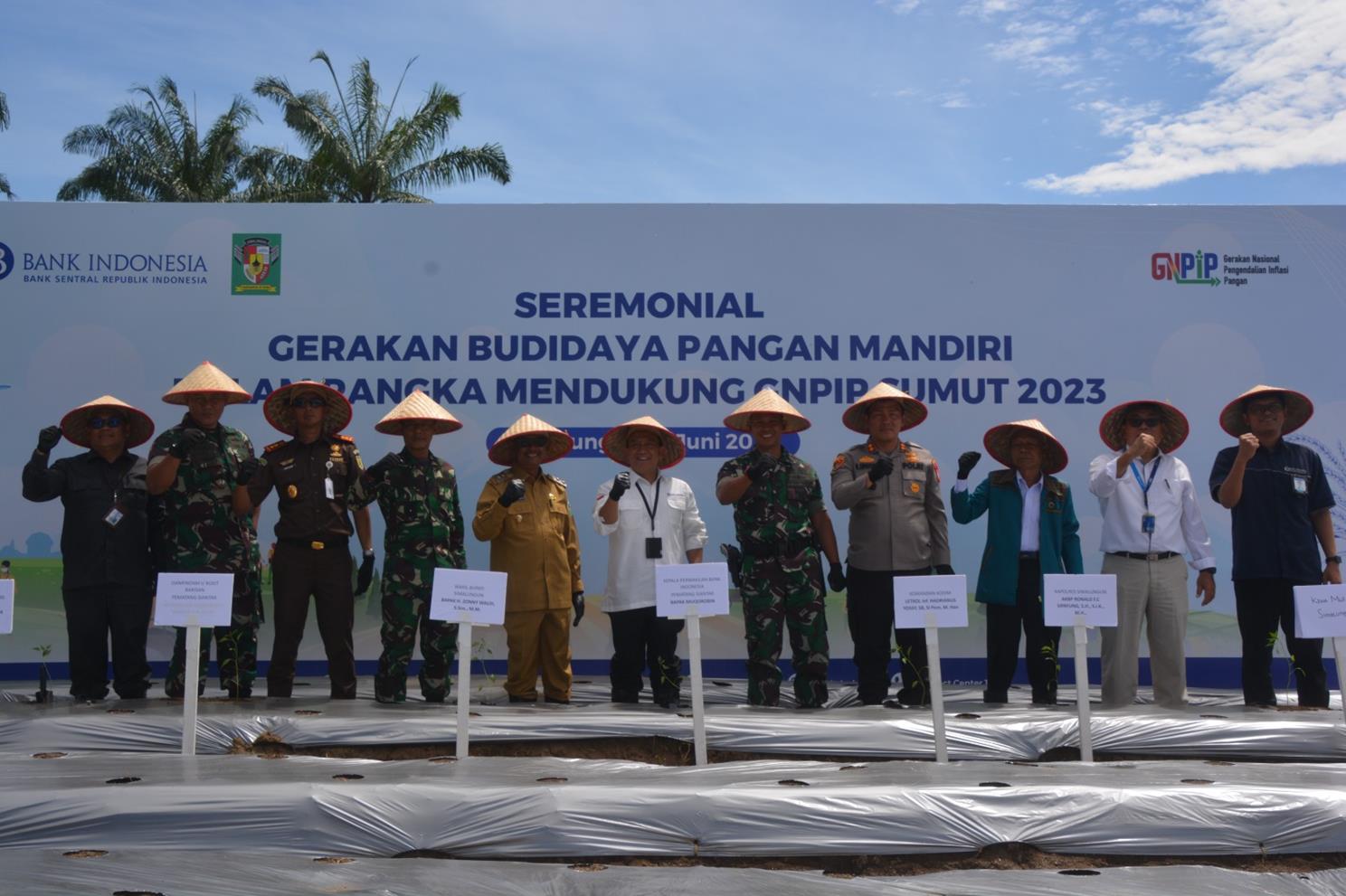 Dalam upaya menggaungkan kegiatan GNPIP Sumatera Utara serta menjawab berbagai tantangan dari aspek produksi, BI Pematang Siantar turut menyelenggarakan Program Gerakan Budidaya Pangan Mandiri di Kabupaten Simalungun, bersinergi dengan Korem 022/Pantai Timur, Rindam I / Bukit Barisan, Pondok Pesantren Al Barokah, dan Kelompok Tani Simanja Sidamanik untuk memanfaatkan lahan tidur di Kabupaten Simalungun dengan melakukan penanaman bersama 17.000 bibit cabai rawit di Bulan Juni 2023.