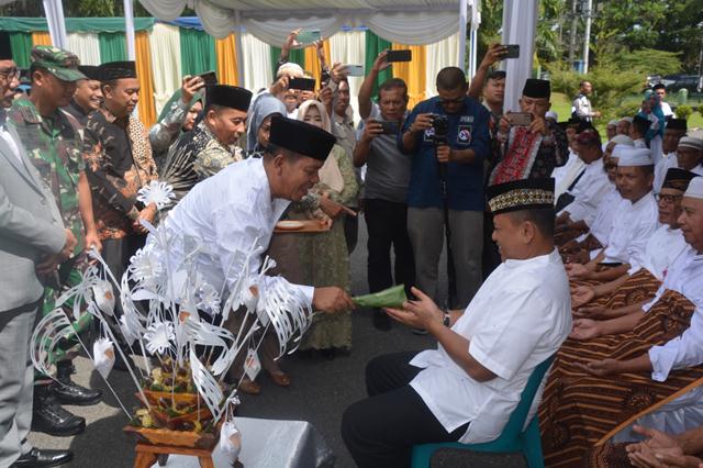 Diakhir sambutannya Bupati menyampaikan beberapa pantun untuk memberikan semangat kepada para jamaah haji.