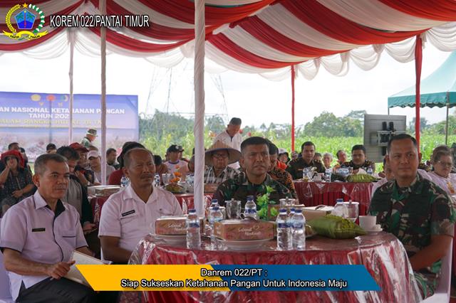Simalungun  |  Dalam rangka meningkatkan pengetahuan dan memperkuat koordinasi antar Instansi lintas sektoral guna mendukung pembangunan ketahanan pangan, Komandan Korem 022/Pantai Timur  Kolonel Inf Agustatius Sitepu, S.Sos., M.Si., M.Han, turut serta menghadiri Gerakan Ketahanan Pangan Nasional Tahun 2023 Melalui Vidcon oleh Wakil Presiden (Wapres) K.H. Ma’ruf Amin, kegiatan tersebut yang dilaksanakan bertempat di Nagori Tiga Dolok Kecamatan Dolok Panribuan Kabupaten Simalungun, Rabu (01/11/2023).