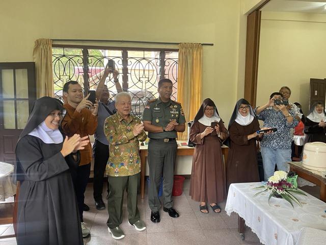 Sibolangit – Dalam rangka kunjungan kerja di wilayah Kodim 0204/Deliserdang, Komandan Korem 022/Pantai Timur Kolonel Inf Agustatius Sitepu, S. Sos., M.Si. M.Han., menyempatkan hadir di acara Hari Ulang Tahun Biara Santa Klara Clasis Katolik di Desa Sikeben, Kecamatan Sibolangit, Kabupaten Deliserdang.Sumut (8/1/2024) kemarin.