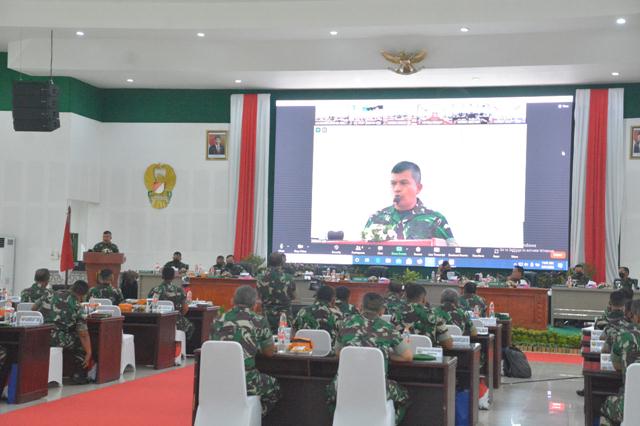 Rapim yang dihadiri secara tatap muka oleh Irdam, Para Danrem Jajaran Kodam I/BB, Kapok Sahli Pangdam, LO TNI AL, LO TNI AU, para Asisten, dan Kabalak Kodam I/BB ini diikuti secara virtual oleh para Dandim dan Danyon Jajaran Kodam I/BB.