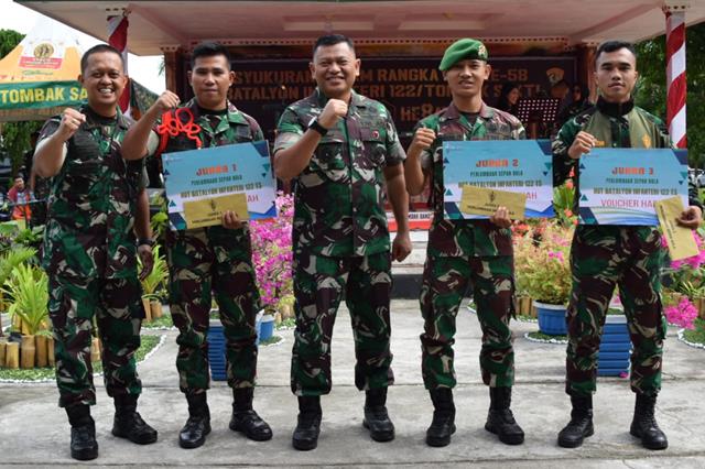 Batalyon 122/TS ini bukan lagi satuan baru namun satuan yang telah banyak berprestasi untuk masyarakat maupun negara. Sehingga diharapkan kedepan terus membuat satuan ini lebih baik, lebih dicintai rakyat dan dapat memberikan manfaat kepada bangsa dan negara. Khususnya kepada masyarakat, jadilah satuan yang disegani dan jadilah satuan yang selalu berhasil dalam melaksanakan tugas. Jika tidak mampu berpestasi, maka jangan melakukan hal-hal yang dapat merusak citra nama baik pribadi, keluarga maupun satuan. Untuk itu hindari Pelanggaran sekecil apapun, tegasnya.