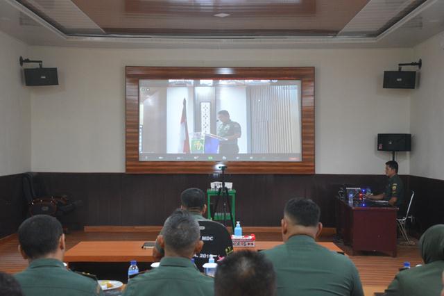 Pematang Siantar – Komandan Korem 022/Pantai Timur Kolonel Inf Agustatius Sitepu, S.Sos. M.SI., M. Han., mengikuti secara Vicon Rapat Evaluasi Progjagar Bidang Pengawasan Semester II Tahun 2023 Jajaran Kodam I/Bukit Barisan Bertempat di Ruang Puskodal Makorem 022/Pantai Timur Jalan Asahan Km 3,5 Kecamatan Siantar Kabupaten Simalungun. Senin (18/12/2023).