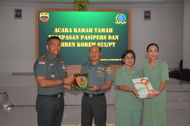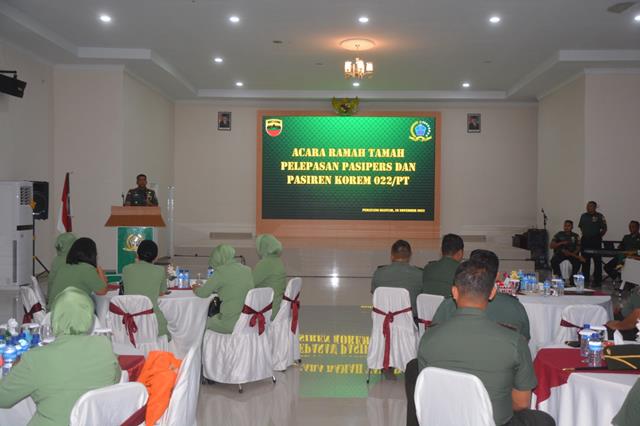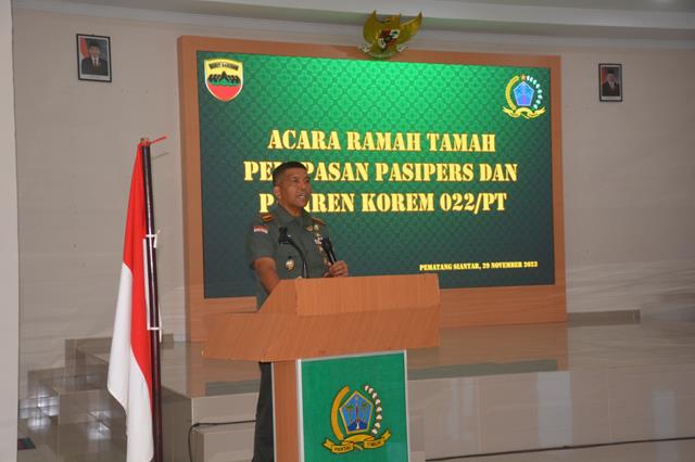 Pematang Siantar | Komandan Korem (Danrem) 022/Pantai Timur Kolonel Inf Agustatius Sitepu, S.Sos. M.SI., M.Han, memimpin Acara Korp Raport Pindah Satuan dalam rangka pelepasan Pasipers dan Pasiren Korem 022/PT, kegiatan tersebut yang berlangsung di Aula Pantai Timur Korem 022/PT Jalan Asahan Km.3,5 Nagori Estate Kecamatan Siantar Kabupaten Simalungun, Rabu (29/11/2023).