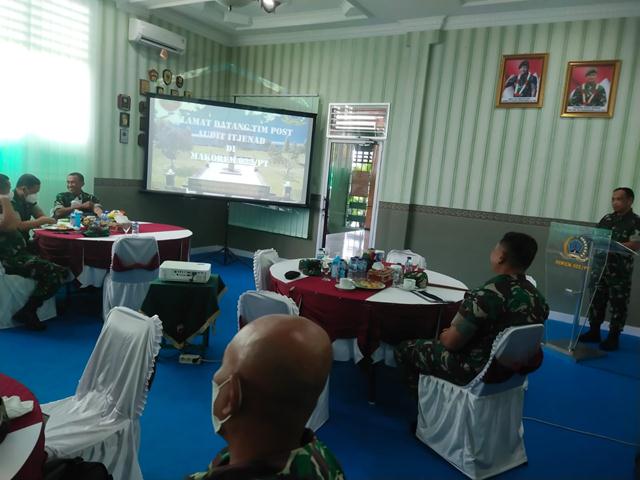 Kedatangan Tim pengawasan Post Audit Itjenad yang dipimpin oleh Brigjen TNI Sulistiyono, S.Sos.,C.Fr.A.,M.M. beserta seluruh rombongan disambut langsung oleh Komandan Korem 022/PT Kolonel Inf Luqman Arief SIP.