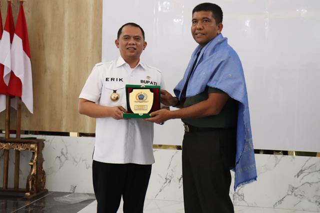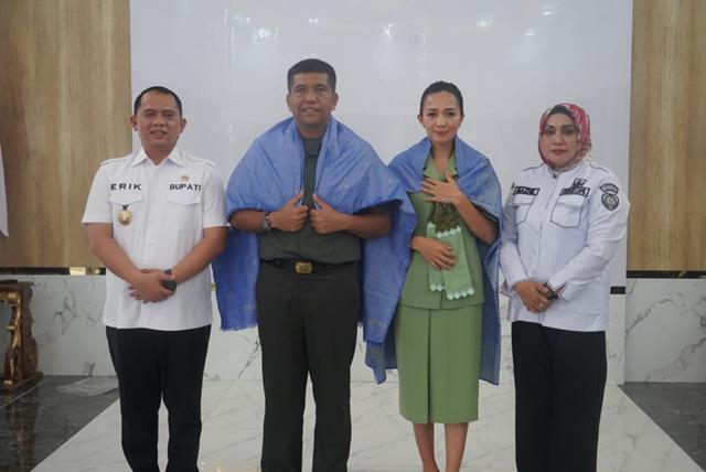 Labuhan Batu | Bupati Labuhan batu dr. H. Erik Adtrada Ritonga, MKM didampingi Forkopimda Labuhan batu beserta para pimpinan OPD menyambut kedatangan Danrem 022/Pantai Timur Kolonel Inf Agustatius Sitepu S.Sos M.Si M.Han di Rumah Dinas Bupati Labuhan batu jalan Wr.Supratman Rantau prapat Kelurahan Padang Matinggi Kecamatan Rantau Utara Kabupaten Labuhan Batu, Sumut. Rabu (18/10/2023).