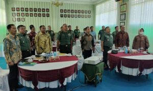 Langkat – Komandan Korem (Danrem) 022/Pantai Timur Kolonel Inf Agustatius Sitepu, S.Sos., M.Si., M.Han, didampingi Dandim 0203/Langkat sambut kedatangan Tim Pengawasan dan Evaluasi (Wasev) TMMD Ke-118 Kodim 0203/Langkat Tahun 2023, Ketua Tim Wasev Mayjen TNI Herianto Saputra, SIP, M.Si, Kamis (12/10/2023).