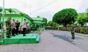 Langkat – Komandan Korem (Danrem) 022/Pantai Timur Kolonel Inf Agustatius Sitepu, S.Sos., M.Si., M.Han, didampingi Dandim 0203/Langkat sambut kedatangan Tim Pengawasan dan Evaluasi (Wasev) TMMD Ke-118 Kodim 0203/Langkat Tahun 2023, Ketua Tim Wasev Mayjen TNI Herianto Saputra, SIP, M.Si, Kamis (12/10/2023).