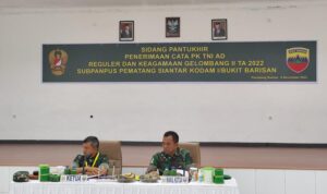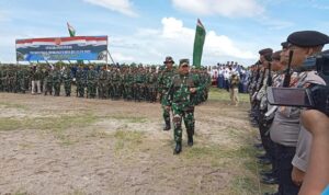 Langkat – Komandan Korem (Danrem) 022/Pantai Timur Kolonel Inf Agustatius Sitepu, S.Sos., M.Si., M.Han, didampingi Dandim 0203/Langkat sambut kedatangan Tim Pengawasan dan Evaluasi (Wasev) TMMD Ke-118 Kodim 0203/Langkat Tahun 2023, Ketua Tim Wasev Mayjen TNI Herianto Saputra, SIP, M.Si, Kamis (12/10/2023).