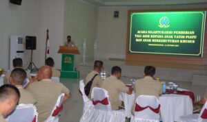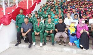 Langkat – Komandan Korem (Danrem) 022/Pantai Timur Kolonel Inf Agustatius Sitepu, S.Sos., M.Si., M.Han, didampingi Dandim 0203/Langkat sambut kedatangan Tim Pengawasan dan Evaluasi (Wasev) TMMD Ke-118 Kodim 0203/Langkat Tahun 2023, Ketua Tim Wasev Mayjen TNI Herianto Saputra, SIP, M.Si, Kamis (12/10/2023).