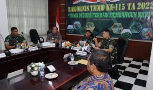 Langkat – Komandan Korem (Danrem) 022/Pantai Timur Kolonel Inf Agustatius Sitepu, S.Sos., M.Si., M.Han, didampingi Dandim 0203/Langkat sambut kedatangan Tim Pengawasan dan Evaluasi (Wasev) TMMD Ke-118 Kodim 0203/Langkat Tahun 2023, Ketua Tim Wasev Mayjen TNI Herianto Saputra, SIP, M.Si, Kamis (12/10/2023).