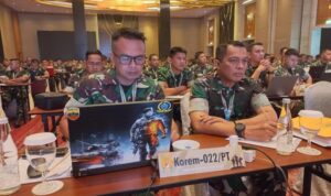 Langkat – Komandan Korem (Danrem) 022/Pantai Timur Kolonel Inf Agustatius Sitepu, S.Sos., M.Si., M.Han, didampingi Dandim 0203/Langkat sambut kedatangan Tim Pengawasan dan Evaluasi (Wasev) TMMD Ke-118 Kodim 0203/Langkat Tahun 2023, Ketua Tim Wasev Mayjen TNI Herianto Saputra, SIP, M.Si, Kamis (12/10/2023).