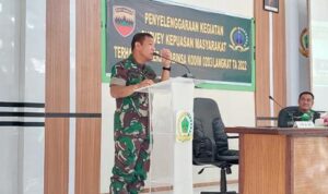 Langkat – Komandan Korem (Danrem) 022/Pantai Timur Kolonel Inf Agustatius Sitepu, S.Sos., M.Si., M.Han, didampingi Dandim 0203/Langkat sambut kedatangan Tim Pengawasan dan Evaluasi (Wasev) TMMD Ke-118 Kodim 0203/Langkat Tahun 2023, Ketua Tim Wasev Mayjen TNI Herianto Saputra, SIP, M.Si, Kamis (12/10/2023).