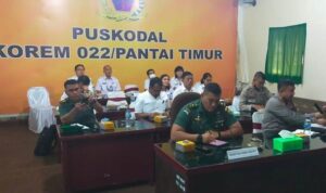 Langkat – Komandan Korem (Danrem) 022/Pantai Timur Kolonel Inf Agustatius Sitepu, S.Sos., M.Si., M.Han, didampingi Dandim 0203/Langkat sambut kedatangan Tim Pengawasan dan Evaluasi (Wasev) TMMD Ke-118 Kodim 0203/Langkat Tahun 2023, Ketua Tim Wasev Mayjen TNI Herianto Saputra, SIP, M.Si, Kamis (12/10/2023).