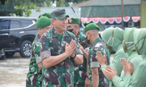 Langkat – Komandan Korem (Danrem) 022/Pantai Timur Kolonel Inf Agustatius Sitepu, S.Sos., M.Si., M.Han, didampingi Dandim 0203/Langkat sambut kedatangan Tim Pengawasan dan Evaluasi (Wasev) TMMD Ke-118 Kodim 0203/Langkat Tahun 2023, Ketua Tim Wasev Mayjen TNI Herianto Saputra, SIP, M.Si, Kamis (12/10/2023).