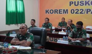 Langkat – Komandan Korem (Danrem) 022/Pantai Timur Kolonel Inf Agustatius Sitepu, S.Sos., M.Si., M.Han, didampingi Dandim 0203/Langkat sambut kedatangan Tim Pengawasan dan Evaluasi (Wasev) TMMD Ke-118 Kodim 0203/Langkat Tahun 2023, Ketua Tim Wasev Mayjen TNI Herianto Saputra, SIP, M.Si, Kamis (12/10/2023).