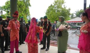 Langkat – Komandan Korem (Danrem) 022/Pantai Timur Kolonel Inf Agustatius Sitepu, S.Sos., M.Si., M.Han, didampingi Dandim 0203/Langkat sambut kedatangan Tim Pengawasan dan Evaluasi (Wasev) TMMD Ke-118 Kodim 0203/Langkat Tahun 2023, Ketua Tim Wasev Mayjen TNI Herianto Saputra, SIP, M.Si, Kamis (12/10/2023).
