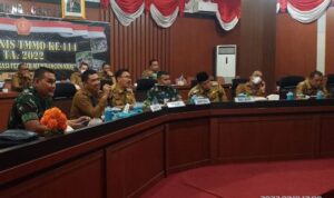 Langkat – Komandan Korem (Danrem) 022/Pantai Timur Kolonel Inf Agustatius Sitepu, S.Sos., M.Si., M.Han, didampingi Dandim 0203/Langkat sambut kedatangan Tim Pengawasan dan Evaluasi (Wasev) TMMD Ke-118 Kodim 0203/Langkat Tahun 2023, Ketua Tim Wasev Mayjen TNI Herianto Saputra, SIP, M.Si, Kamis (12/10/2023).