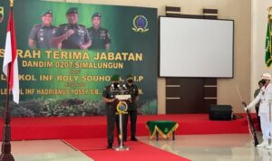 Langkat – Komandan Korem (Danrem) 022/Pantai Timur Kolonel Inf Agustatius Sitepu, S.Sos., M.Si., M.Han, didampingi Dandim 0203/Langkat sambut kedatangan Tim Pengawasan dan Evaluasi (Wasev) TMMD Ke-118 Kodim 0203/Langkat Tahun 2023, Ketua Tim Wasev Mayjen TNI Herianto Saputra, SIP, M.Si, Kamis (12/10/2023).