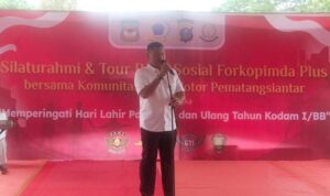 Langkat – Komandan Korem (Danrem) 022/Pantai Timur Kolonel Inf Agustatius Sitepu, S.Sos., M.Si., M.Han, didampingi Dandim 0203/Langkat sambut kedatangan Tim Pengawasan dan Evaluasi (Wasev) TMMD Ke-118 Kodim 0203/Langkat Tahun 2023, Ketua Tim Wasev Mayjen TNI Herianto Saputra, SIP, M.Si, Kamis (12/10/2023).