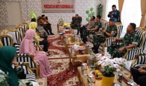 Langkat – Komandan Korem (Danrem) 022/Pantai Timur Kolonel Inf Agustatius Sitepu, S.Sos., M.Si., M.Han, didampingi Dandim 0203/Langkat sambut kedatangan Tim Pengawasan dan Evaluasi (Wasev) TMMD Ke-118 Kodim 0203/Langkat Tahun 2023, Ketua Tim Wasev Mayjen TNI Herianto Saputra, SIP, M.Si, Kamis (12/10/2023).