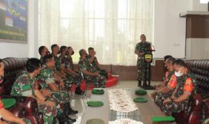 Langkat – Komandan Korem (Danrem) 022/Pantai Timur Kolonel Inf Agustatius Sitepu, S.Sos., M.Si., M.Han, didampingi Dandim 0203/Langkat sambut kedatangan Tim Pengawasan dan Evaluasi (Wasev) TMMD Ke-118 Kodim 0203/Langkat Tahun 2023, Ketua Tim Wasev Mayjen TNI Herianto Saputra, SIP, M.Si, Kamis (12/10/2023).
