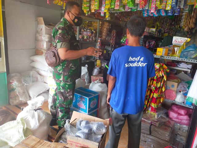 Pematang Siantar  |  Guna mencegah penyebaran virus covid 19 di wilayah kota Pematangsiantar serta dalam rangka pencegahan penyebaran Wabah Virus Corona (Covid-19), dalam hal ini Personel Bintara Pembiona Desa (Babinsa) Koramil 01/Siantar Utara jajaran Kodim 0207/Simalungun Serda Muhammad Harunsyah turun kewilayah binaan untuk melaksanakan Komunikasi Sosial (Komsos) dengan kegiatan PPKM kepada pemilik Grosir (Jualan Sembako) dan Pembeli serta untuk menjalin Silaturahmi dan mengajak warga supaya tetap patuhi protkes dengan tetap gunakan masker saat aktifitas diluar dan hindari kerumunan bersama dengan warga Desa Binaan, dengan menyampaiakn himbauan tentang Disiplin Protokol Kesehatan diwilayah tersebut, kegiatan tersebut yang dilaksanakan bertempat di Jalan Bah Kapul Kelurahan Sigulang Gulang Kecamatan Siantar Utara Kota Pematang Siantar, Senin (21/02/2022).