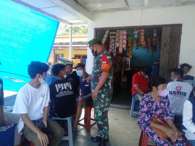 Sementra itu ditempat terpisah Danramil menyampaikan, melalui Komsos Babinsa mengajak warga masyarakat agar tetap disiplin mematuhi protokol kesehatan dengan menerapkan 4M. “Disiplin menerapan protokol kesehatan sangat penting untuk mencega penularan Corona atau Covid-19, melalui Komsos kami mengajak dan mengingatkan warga masyarakat agar tetap disiplin mematuhi protokol kesehatan dengan menerapkan 4M, memakai masker, menjaga jarak dan mencuci tangan dengan air mengalir menggunakan sabun serta menjauhi kerumunan”, pungkasnya.