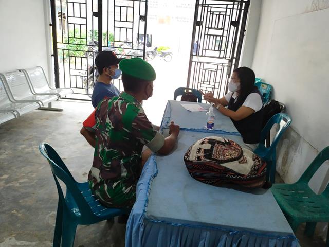 Simalungun | Keseharian seorang Babinsa dalam tugas pembinaan teritorial di wilayah desa binaannya adalah menciptakan kedekatan dengan warga masyarakat termasuk dengan para Ibu-ibu, seperti yang dilakukan oleh Personel Bintara Pembina Desa (Babinsa) Koramil 08/Bangun jajaran Kodim 0207/Simalungun Serda Sismadi turun kewilayah binaan untuk melaksanakan kegiatan Komunikasi Sosial (Komsos) bersama dengan Ibu Lisbet br Sitimorang dan ibu Sri Wahyuni pegawai Puskesmas Simpang Bah jambi dalam rangka agar bersama-sama ikut berperan untuk menghimbau masyarakat agar selalu mengikuti Protokol Kesehatan dengan menggunakan Masker, mencuci tangan serta menjaga jarak guna memutus mata Rantai Penyebaran virus Covid-19, kegiatan tersebut yang dilaksanakan terletak di Nagori Bangun Kecamatam Gunung Malela Kabupaten Simalungun, Kamis (28/04/2022).