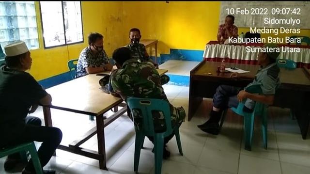 Batu Bara | Dalam rangka untuk menciptakan dan meningkatkan kerja sama yang baik dan menjaga silatuhrahmi antara TNI, Kepala Desa (Kades) dan Perangkat desa serta Masyarakat dalam rangka untuk menciptakan kemanunggalan TNI dan Rakyat, seperti halnya yang dilakukan oleh Personel Binatara Pembina Desa (Babinsa) Koramil 01/Medang Deras jajaran Kodim 0208/Asahan Sertu Miswanto turun kewilayah desa binaan untuk melaksanakan kegiatan Komunikasi Sosial (Komsos) bersama dengan Perangkat Desa dan Bhabinpotmar dalam rangka percepatan Vaksin Booster untuk Masyarakat desa binaan, kegiatan ini juga turut serta bersama dengan Bapak Tijo (Kades), Bapak Serda (Mar) Ali Ahmad (Bhabinpotmar), Bapak Wagino (Kadus) dan Bapak Sukiman (Kaur), kegiatan tersebut yang dilaksanakan bertempat di Desa Sidomulyo Kecamatan Medang Deras Kabupaten Batu Bara, Kamis (10/02/2022).