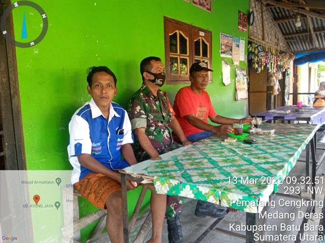 Batu Bara  |  Agar Warga Masyarakat yang berpergian keluar rumah tetap memakai Masker dan mengatur jarak selalu menjalankan Protokol Kesehatan maka dengan itu, seperti halnya yang dilakukan oleh Personel Bintara Pembina Desa (Babinsa) Koramil 13/Buntu Pane jajaran Kodim 0208/Asahan Serda Muliana turun kewilayah binaan untuk turut serta melaksanakan kegiatan Komunikasi Sosial dan menghimbau kepada masyarakat agar tetap meningkatkan disiplin dan penegakan hukum Protokol Kesehatan dalam pencegahan Virus Covid-19 serta himbauan kepada warga  untuk  melaksanakan vaksin III dan mengingat kan agar   tetap mematuhi prokes bersama dengan Ibu Aminah, Ibu S. Damanik, Bapak Robert Silalahi dan Bapak Sulaiman, kegiatan tersebut yang dilaksanakan bertempat di Kelurahan Pangkalan Dodek Baru Kecamatan Medang Deras Kabupaten Batu Bara, Minggu (13/03/2022).