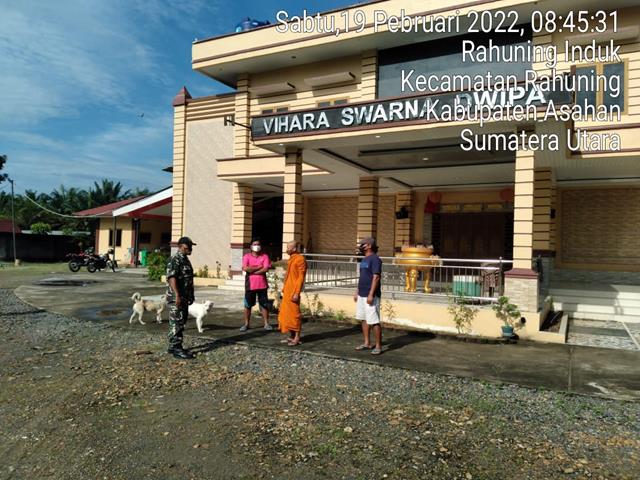 Batu Bara | Dengan Tujuan dan diharapakan terjalinya hubungan yang lebih humanis dan toleransi antar umat beragama di Wilayah Koramil 15/Bandar Pulau. Maka dari itu Personel Babinsa Koramil 15/Bandar Pulau jajaran Kodim 0208/Asahan, Babinsa Sertu Miswanto turut melaksanakan komsos ke Rumah ibadah Vihara Swarna Dwipa di Desa Rahuning Induk, Kecamatan Rahuning, Kabupaten Asahan, Sabtu (19/02/2022).