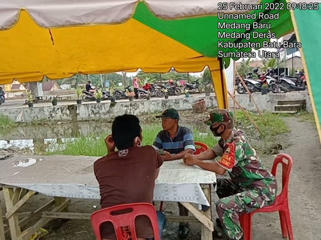 Batu Bara | Selalu siap sedia ingatkan warga masyarakat binaan dengan melalui Komunikasi Sosial dalam rangka tentang Protokol Kesehatan serta dalam rangka membantu dan mendukung warga binaan, dalam hal ini seperti yang dilakukan oleh Personil Bintara Pembina Desa (Babinsa) Koramil 01/Medang Deras jajaran Kodim 0208/Asahan Sertu Legianto turun kewilayah binaan untuk melaksanakan kegiatan Komunikasi Sosial (Komsos) bersama dengan warga binaan selaku Mitra Karib dalam rangka menghimbau agar selalu mematuhi protokol kesehatan dan memberikan himbauan kepada warga yg blm melaksanakan vaksinasi agar melaksanakan vaksin dipuskesmas terdekat dan mengingatkan kembali kepada warga masyarakatnya agar selalu tetap memakai masker apabila keluar rumah dan tetap mematuhi Protokol Kesehatan, bersama dengan Bapak Irwandi dan Bapak Wahyu, kegiatan tersebut yang dilaksanakan bertempat di Desa Medang Baru Kecamatan Medang Deras Kabupaten Batu Bara, Jumat (25/02/2022).