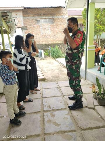 Untuk menciptakan interaksi dan komunikasi guna Kemapuan Teritorial dalam menerapkan Protokol Kesehatan bersama masyarakat Dangan anak sekolah di wilayah binaan, seperti yang dilaksanakan oleh Personel Bintara Pembina Desa Koramil 10/Tanah Jawa jajaran Kodim 0207/Simalungun Serda Oloan Pangaribuan turun langsung kewilayah binaan untuk menghimbau Warga masyarakat dan Anak Sekolah agar tetap menggunakan Masker, Instruksi Presiden Nomor 6 Tahun 2020 Tentang peningkatan Disiplin dan Penegakan Hukum Protokol Kesehatan dalam Pencegahan dan Pengendalian Covid-19, kegiatan tersebut yang dilaksanakan bertempat di Nagori Balimbingan Kecamatan Tanah Jawa Kabupaten Simalungun, Kamis (25/05/2022).