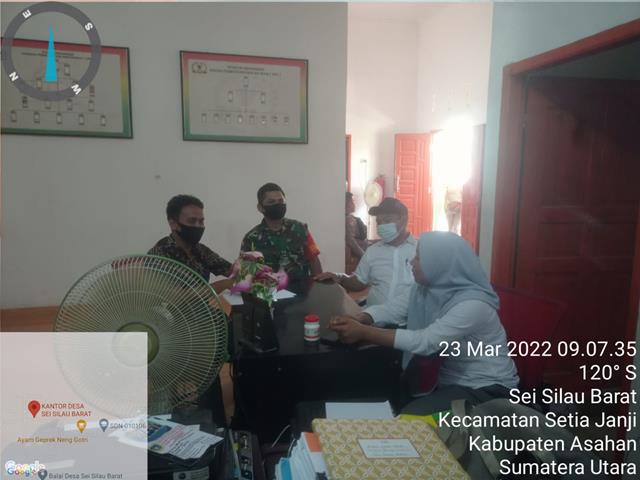Asahan | Dalam rangka untuk menjalin silaturahmi dengan perangkat desa yang ada diwilayah binaan, dalam hal ini seperti yang dilakukan oleh Personel Bintara Pembina Desa Koramil 13/Buntu Pane jajaran Kodim 0208/Asahan Serka Yudianto turun kewilayah binaan untuk melaksanakan kegiatan Komunikasi Sosial (Komsos) agar bisa saling memberikan masukan perkembangan situasi kondisi baik Geografi, Demokrasi maupun Kondisi Sosial yang ada di Wilayah Binaan bersama dengan Kadus III Sei Silau Barat Bapak Sugito, Kadus V Sei Silau Barat Bapak Aidil Fitri, Kadus VII Sei Silau Barat Bapak Herland dan Perangkat Desa Si Silau Barat, kegiatan tersebut yang dilaksanakan bertempat di Kantor Desa Sei Silau Barat Kecamatan Setia Janji Kabupaten Asahan, Rabu (23/03/2022).