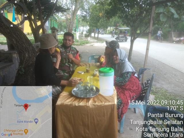 Tanjung Balai | Untuk menjalin silaturahmi bersama dengan warga binaan, dalam hal ini seperti yang dilakukan oleh Personel Bintara Pembina Desa Koramil 09/Tanjung Balai jajaran Kodim 0208/Asahan Serda As. Tarigan turun kewilayah binaan untuk turut serta melaksanakan kegiatan Komunikasi Sosial (Komsos) bersama dengan Mitra Karib dan warga masyarakat binaan dalam rangka untuk menjalin dan mempererat hubungan silaturahmi yang baik dan mengingat kan agar tetap mamakai masker apabila keluar rumah dan tetap mematuhi Prokes, bersama Bapak Herdy (Mitra Karib), Bapak Reyhan (Warga Masyarakat) dan Ibu Ida Erwanti (Warga masyarakat), kegiatan tersebut yang dilaksanakan bertempat di Jalan Pahlawan Kelurahan Pantai Burung Kecamatan Tanjung Balai Selatan Kota Tanjung Balai, Minggu (15/05/2022).