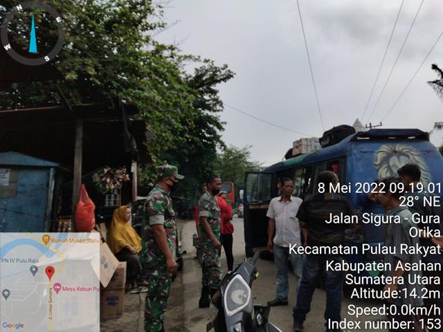 Asahan | Agar terjalinnya hubungan komunikasi yang baik antara babinsa dengan masyarakat desa serta untuk menjalin silaturahmi dengan warga binaan, dalam hal ini seperti yang dilakukan oleh Personel Bintara Pembina Desa (Babinsa) Koramil 16/Pulau Rakayat jajaran Kodim 0208/Asahan Serda Iswandi Marbun dan 1 orang anggota Babinsa turun kewilayah binaan untuk melaksanakan kegiatan Komunikasi Sosial (Komsos) di wilayah binaannya bersama dengan warga Masyarakat binaan sekalian membantu warga yang bepergian untuk pelaksanaan mudik Idul Fitri, dalam rangka agar kegiatan tersebut untuk menanyakan keamanan yang berada di Wilayah binaan tersebut aman dan himbauan agar selalu mematuhi Prokes kepada Masyarakat yang akan melaksanakan mudik serta mengingatkan agar menjaga faktor keselamatan diperjalanan, kegiatan tersebut yang dilaksanakan bertempat di Jalinsum Dusun 1 Desa Orika Kecamatan Pulau Rakyat Kabupaten Asahan, Minggu (08/05/2022).