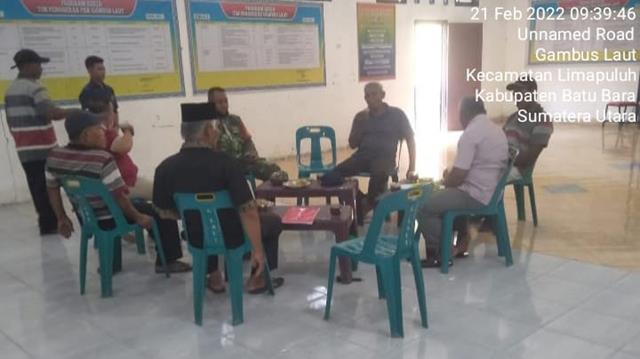 Batu Bara | Agar tercipta kerjasama dan hubungan yang baik antara Babinsa dengan aparatur desa, dalam hal ini seperti yang dilakukan oleh Personel Bintara Pembina Desa (Babinsa) Koramil 03/Lima Puluh jajaran Kodim 0208/Asahan Serda Sutikno turun kewilayah desa binaan untuk melaksanakan Komunikasi Sosial (Komsos) bersama dengan Sekretaris Desa (Sekdes) dan masyarakat Desa Gambus Laut, membahas tentang menjaga kebersihan lingkungan dan pembentukan pos kamling agar lingkungan desa merasa aman dan nyaman, Pos kamling sangat penting guna mencegah pencurian dan ketertiban bermasyarakat bersama dengan Sekdes Gambus Laut Bapak Herman, Kadus dan Masyarakat, kegiatan tersebut dilaksanakan bertempat di Desa Gambus Laut Kecamatan Lima Puluh Pesisir Kabupaten Batu Bara, Senin (21/02/2022).