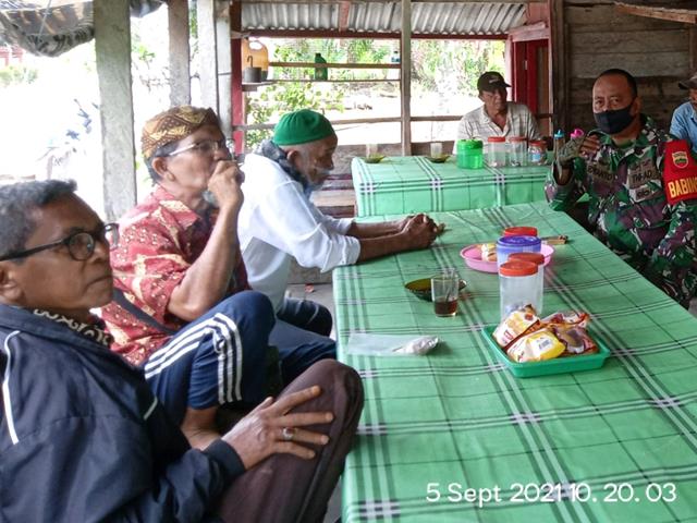 Asahan | Untuk mempererat jalinan silaturahmi dengan warga binaan, Personel Bintara Pembina Desa (Babinsa) Koramil 08/Pulau Buaya jajaran Kodim 0208/Asahan Serda Edyanto turun kewilayah desa binaan untuk melaksanakan kegiatan Komunikasi Sosial (Komsos) dengan bersama warga Masyarakat setempat diwarung bu’ Ijah bersama Tokoh Adat Bapak Tamyes, Ketua BPD Bapak Sarijo dan Warga Masayrakat Bapak H.Ijroi tentang menjaga kebersihan lingkungan dan tetap melaksanakan Protokol Kesehatan bersama dengan, kegiatan tersebut yang dilaksanakan bertempat di Desa Kapias Batu VIII Kecamatan Tanjung Balai Kabupaten Asahan, Minggu (05/09/2021).