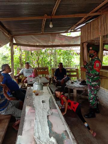 Simalungun | Dalam rangka untuk memutus mata rantai penyebaran Covid-19 diwilayah binaan, maka dari itu Personel Bintara Pembina Desa (Babinsa) Koramil 16/Pane Tonga jajaran Kodim 0207/Simalungun Sertu Tolhas Hutabarat turun kewilayah binaan untuk melaksanakan kegiatan Penegakan Disiplin Protokol Kesehatan dengan menghimbau masyarakat supaya menjaga jarak memakai masker dan mencuci tangan di air yang mengalir serta mengurangi mobilitas, dalam pelaksanaan kegiatan tersebut yang bertempat di Nagori Rawang Pardomuan Kecamatan Panei Kabupaten Simalungun, Minggu (12/09/2021).