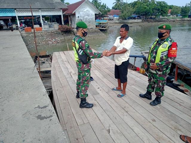 P.susu – Personel Koramil 15/P. Susu kodim 0203/Langkat Dpp. Sertu Yulandi beserta 2 orang babinsa melaksanakan kegiatan penegakan disiplin protokol kesehatan akibat Covid 19 ditempat keramaian Bertempat di Pelabuhan TPI Jl. Pelabuhan Lingkungan IX Kel. Beras basah Kec. Pkl. Susu Kab. Langkat, Selasa ( 31/08/2021).
