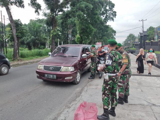 Dengan senyum, sapa dan salam, anggota TNI dari Korem 022/PT  ini nampak begitu bersemangat untuk membagikan makanan berbuka puasa kepada para pengguna jalan raya.