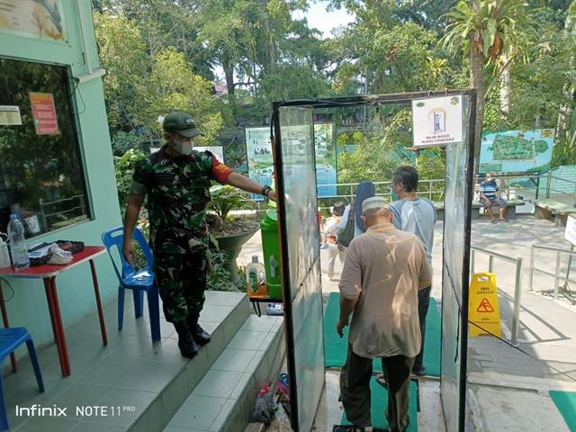 Untuk pemantauan disiplin dilaksanakan oleh Babinsa yang di dampingi oleh pegawai dari taman hewan juga , setiap pengunjung yang memasuki taman hewan tersebut terlebih harus mencuci tangan dan tes suhu tubuh ujar Babinsa Serda Suhendri Pratama.